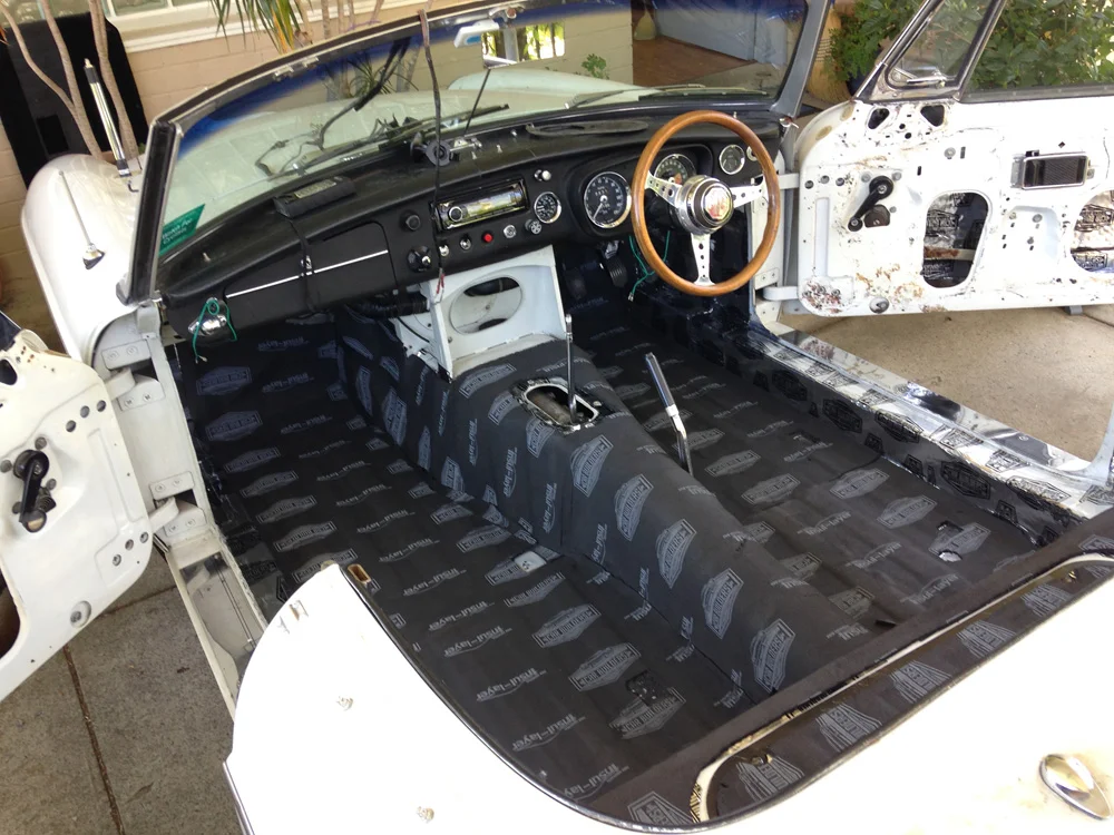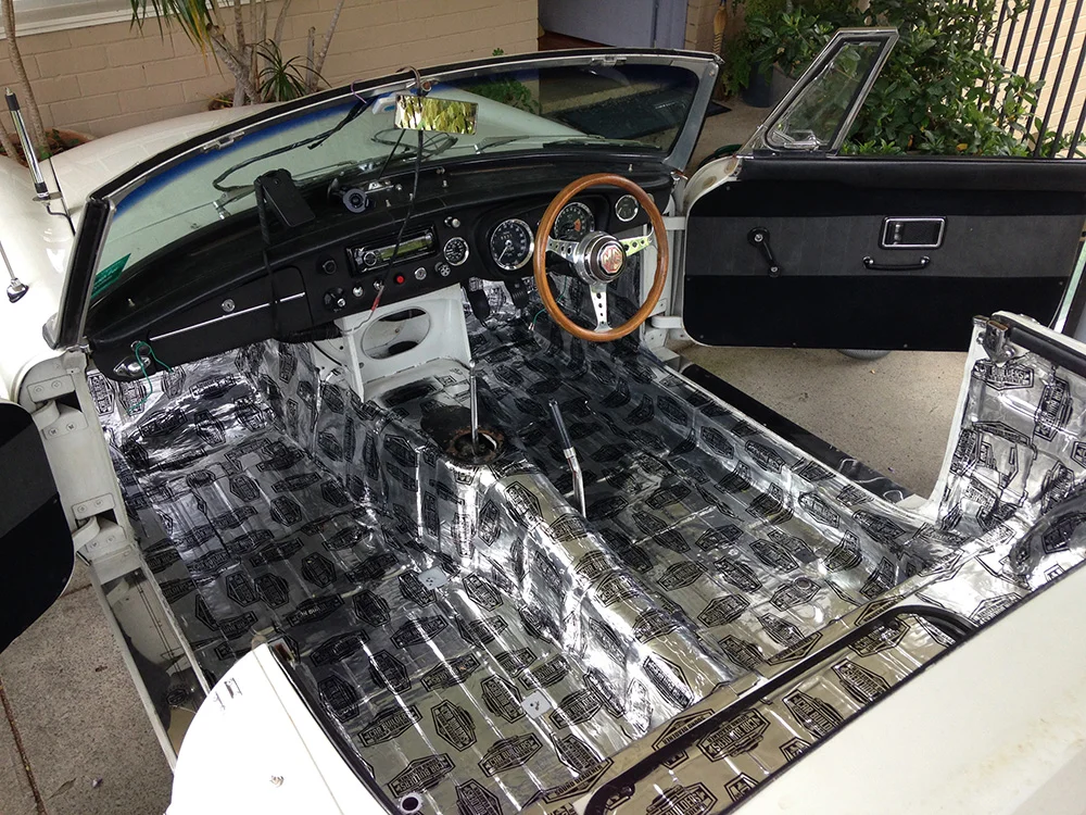 To combat this the whole interior of the car was stripped and lined firstly with a sound deadening material and then a thermal insulating layer before installing new carpets and interior panels.